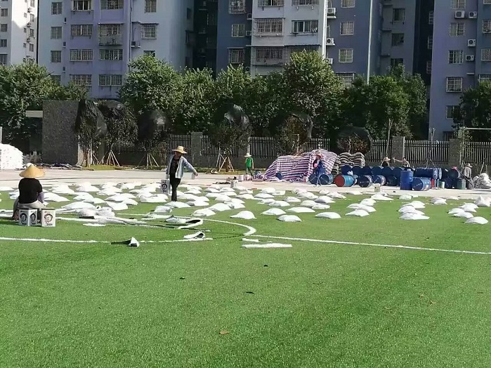 人造草足球場(chǎng)施工中