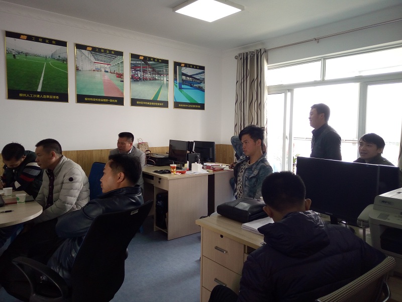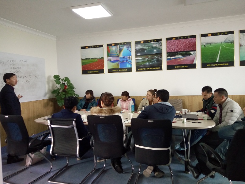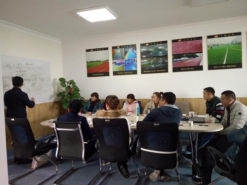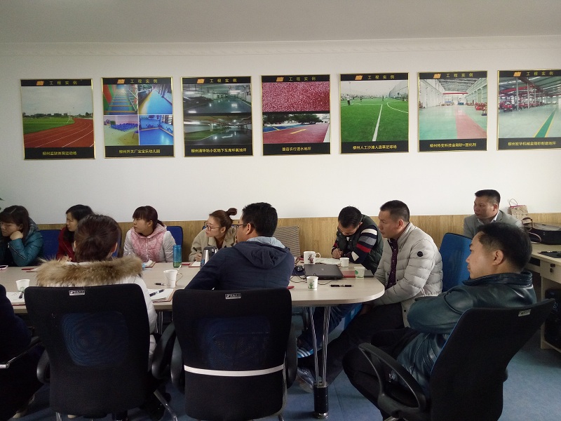 2017年3月1日山東揚名新材料技術(shù)有限公司李總經(jīng)理和銷售總監(jiān)楊總親自到柳州西力公司給西力員工進行了一次系統(tǒng)的硅PU和塑膠跑道產(chǎn)品培訓(xùn),揚名作為中國為數(shù)不多通過國家各項標準體系認證的球場跑道材料生產(chǎn)廠家,其實力也是實實在在的。西力公司經(jīng)過各方面比較,選擇與揚名進行合作,今年在柳州完成了兩個硅PU籃球場的施工,整體效果還是不錯,西力公司也希望進一步合作。因此,對揚名材料的學(xué)習(xí)也是尤為必要的。