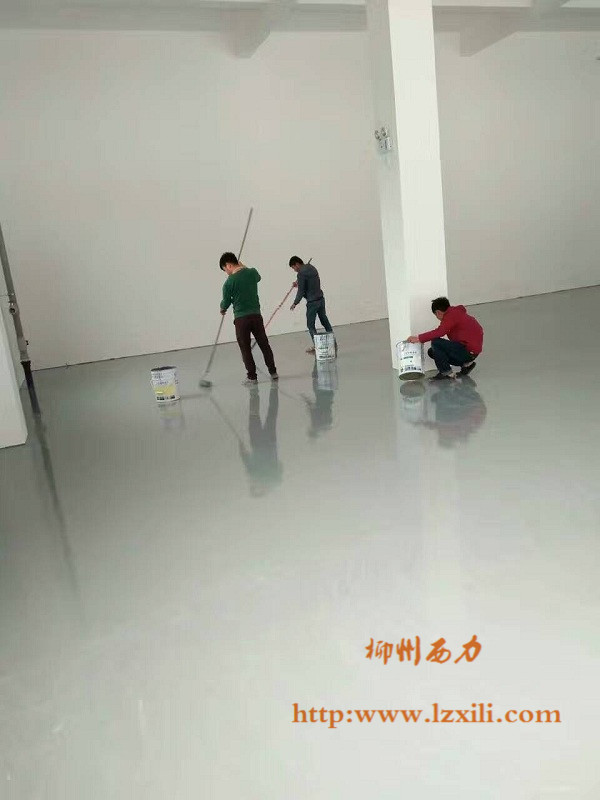 環(huán)氧地坪最后一道工序:面漆施工中。