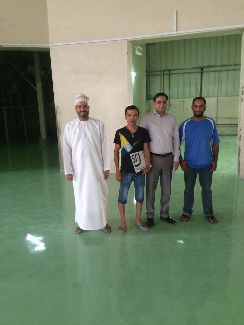 Finished Photo of Epoxy Self-leveling Floor Construction Site Photos of Our Technicians With Amman Workmates